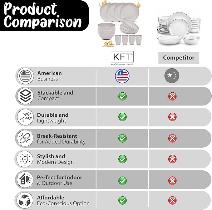 - ECO-FRIENDLY & SAFE: Made with natural wheat straw fiber, our dinnerware set is 100% BPA-free and non-toxic, ensuring a safe dining experience for all ages