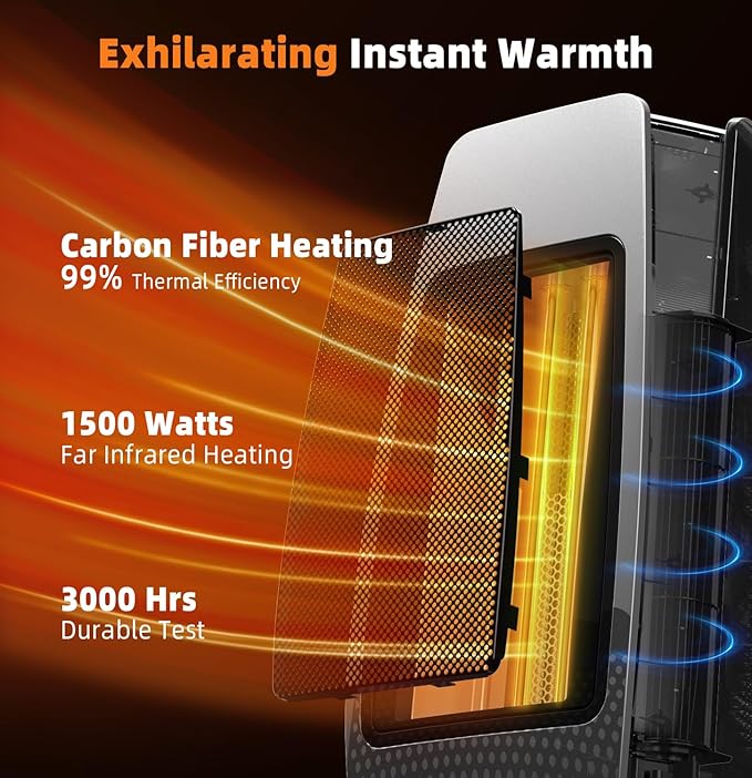 - 【Infrared Heat that Outperforms】 Unleash the power of our 1500W carbon fiber space heater, a champion of energy efficiency that leaves traditional PTC electric heaters in the cold. It's not just about getting warm—it's about getting smart with your heating, keeping your bill looking trim while your living space feels lush with warmth.