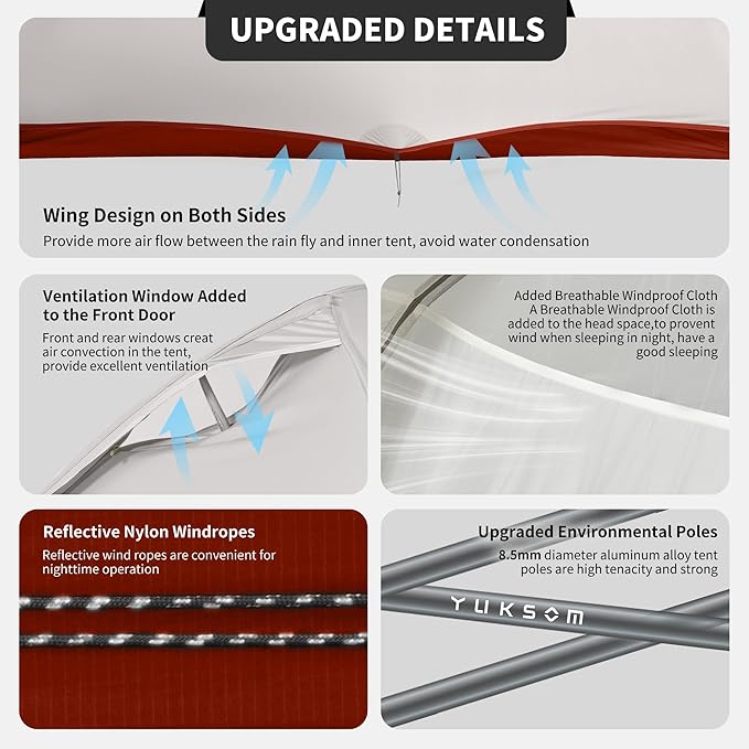 - Enhanced Ventilation and Spacious Design: The upgraded Cloud Up Pro backpacking tent features a ventilation window above the front door, minimizing condensation for a dry and airy interior. Its spacious layout with a large, high front door offers ample room for camping gear and comfortable entry and exit.
