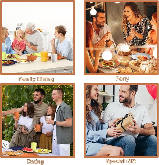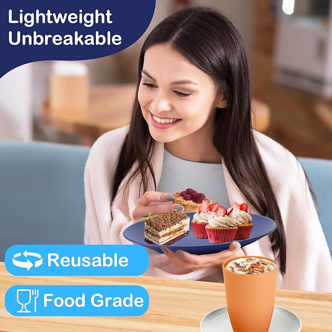 - LIGHTWEIGHT & PRACTICAL: This dishes set are sturdy and practical, and it is safe even if it is accidentally dropped. Its lightweight design allows children to easily enjoy the fun of dining without worries. Whether it is adults or the elderly, this plastic dinnerware set can adapt perfectly. It is not only a practical dinnerware, but also a life attitude