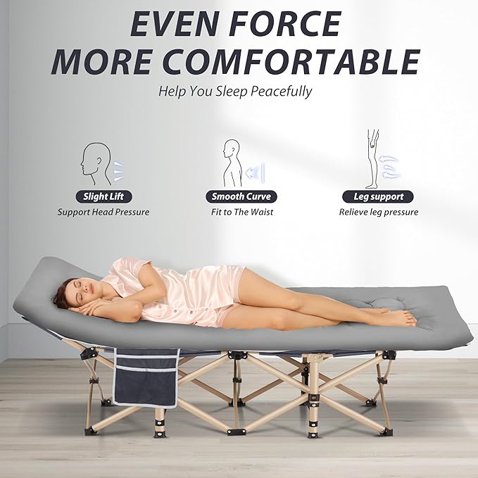 Folding Camping Cot for Sleeping, Portable Cots for Adults, Heavy Duty Cot Bed 550LBS(Max Load), Extra Wider Cots with Large Pocket for Outdoor, Office, Beach