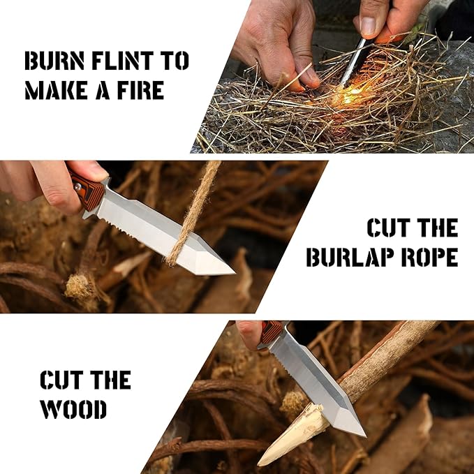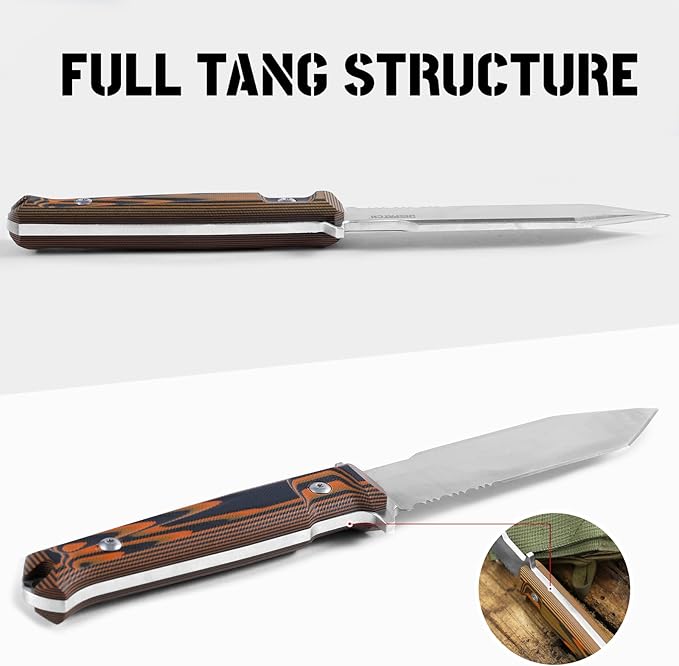 - HIGH-QUALITY TACTICAL SURVIVAL KNIFE: Full tang survival knife Blade is made of reliable 8cr13mov stainless less provides razor sharp cutting with G10 handle the deep index-finger indentation providing an extremely secure grip, non-slip. Accord with human body engineering for superior hand control, agility, and comfort