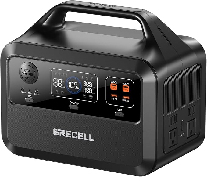 GRECELL Portable Power Station 600, 110V/600W Solar Generator(Surge 1200W), 460Wh Backup LiFePO4 Battery for Outdoor Home Emergency