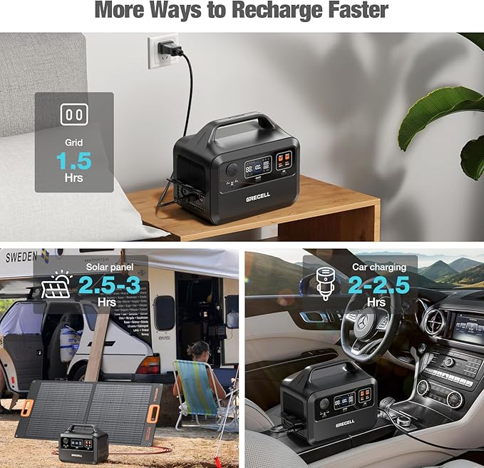 - 【Charged in 1.5 Hour】The Power Station 600W LiFePO4 battery, which can be fully charged in just 1.5 hour at 600W AC input, always ready to go when you need it.
