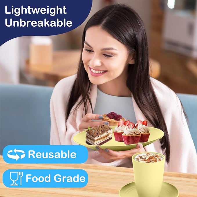 - SAFE & RELIABLE: We carefully crafted a set of wheat straw dinnerware set for you. It is carefully made of high-quality wheat straw fiber and BPA-free PP material. It is not only reusable, but also protects the health of you and your family because its material does not contain harmful chemicals