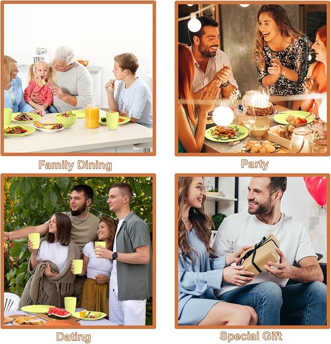 - ELEGANT DESIGN: The dinner set features an elegant and modern design. Each plate is embellished with delicate linear embossed patterns. The non-slip design on the bottom is both stable. The combination of 40 sets in 4 colors brings a touch of art to your dining table. It is perfect as a gift and a blessing for holidays, birthdays, weddings and housewarming