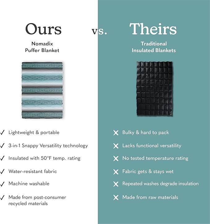 Nomadix Puffer Blanket – Water-Resistant, Eco-Friendly Insulated Blanket with Snaps for Camping, Beach, and Travel, Made from Recycled Materials