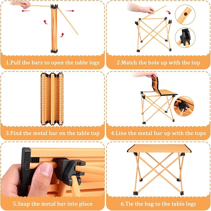 - EASY TO CARRY - This camping table features a foldable design, making it convenient to carry and use anytime, anywhere. No tools are required, and it can be assembled in just 1 minute. It is ideal for outdoor activities, picnics, barbecues, cooking, festivals, beaches, and family use.