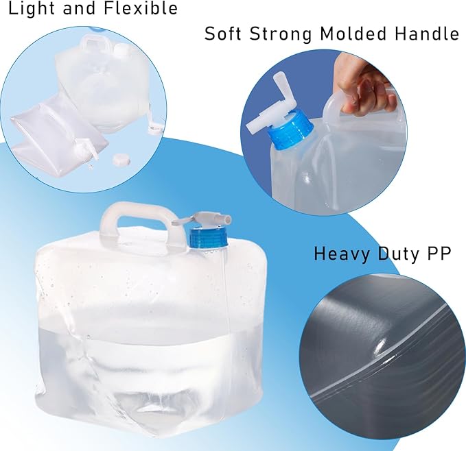 - The 5.3-gallon volume makes it ideal for emergencies and disaster events. Versatile for daily use and outdoor activities such as camping, RV trips, hunting, hiking, fishing, picnics, BBQs, sports events, festivals, parties, and beach outings.