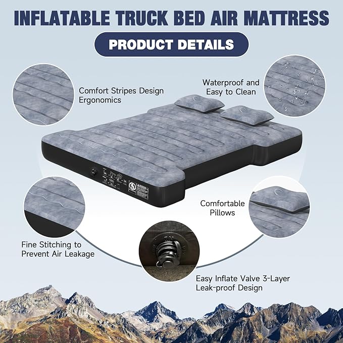 - Versatile Applications: In addition to truck use, this air mattress is suitable for various settings such as guest rooms, hotels, tents, and campsites.Its versatile design caters to your relaxation and sleep needs in multiple scenarios, providing a home-like comfort wherever you go.