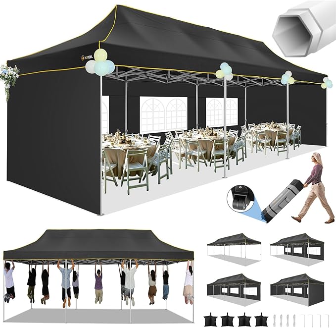 HOTEEL Tents for Parties 10x30 Heavy Duty Pop Up Canopy Tent with 5 Sidewalls&Wheeled Bag, Commercial Event Party Tent Wedding Instant Canopy Waterproof, UV 50+, Upgraded Thicked Hexagonal Legs, Black
