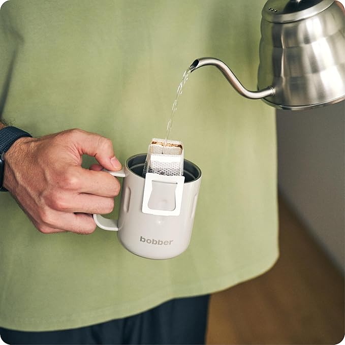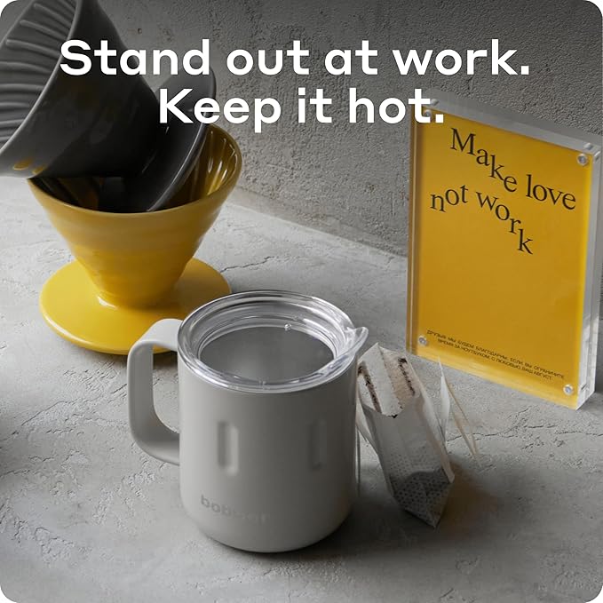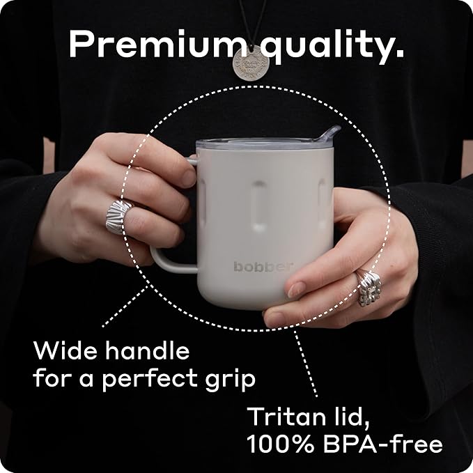 BOBBER 10 oz Insulated Coffee Mug with Handle & Lid – Stainless Steel Coffee Travel Mug – Triple Walled Metal Cup for Hot Drinks, Ideal for Men & Women, Work & Travel (Sand Grey)