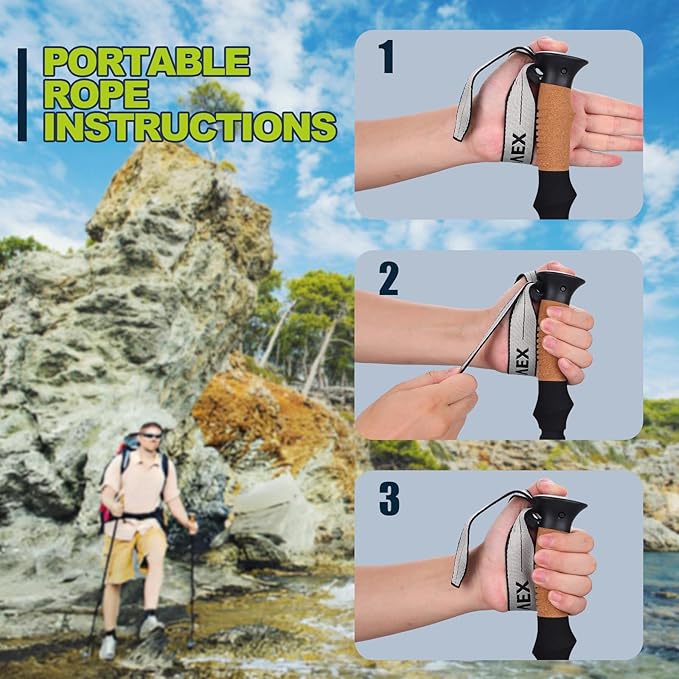 - Secure Grip: The padded straps and moisture-wicking cork handles shape to your hand for a custom fit. And the threaded pole tips keep your accessories securely attached, even in tough conditions like snow or mud