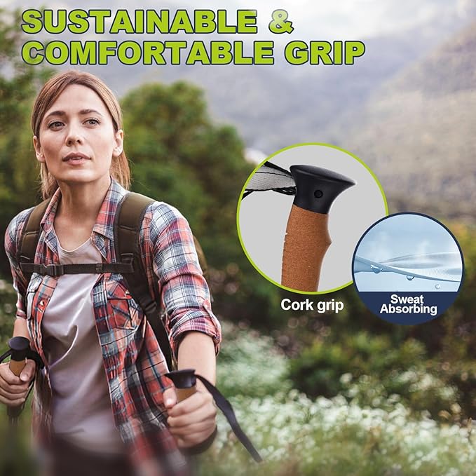 Trekking Poles - Lightweight, Collapsible, Adjustable Hiking Poles with Quick Flip Lock, 7075 Aluminum, Natural Cork Grip, Anti Shock Walking Sticks for All Terrain, Men and Women, 2 Pack
