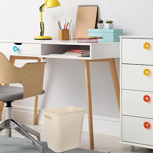 UUJOLY Plastic Small Trash Can Wastebasket, Garbage Container Basket for Bathrooms, Laundry Room, Kitchens, Offices, Kids Rooms, Dorms, 3.5 Gallon, Beige, 2 Pack