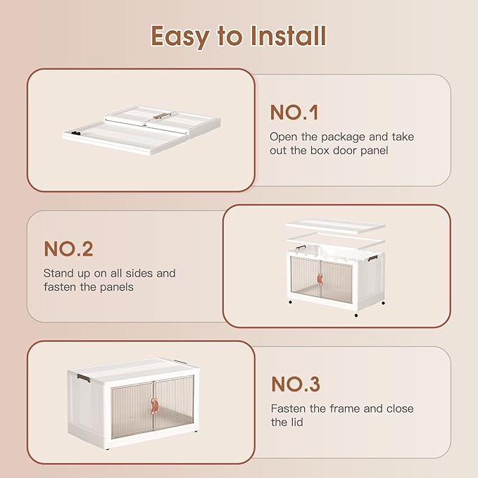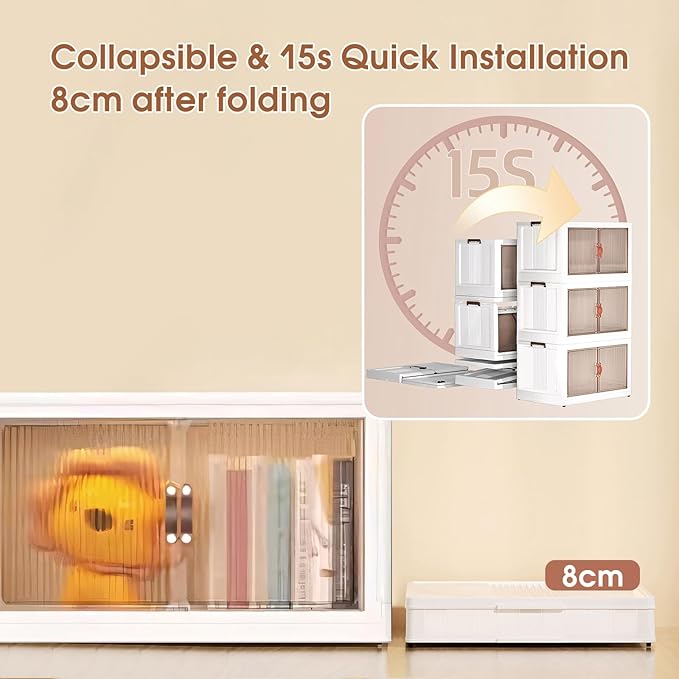 - 【Collapsible Design and Easy to Install】Stackable storage organizer saves space and can be used individually or stacked as many boxes as you need. It only takes about 15s to install. When you're not using our storage containers, you can fold them up in just three easy steps, anyone can effortlessly install them. Their foldable design maximizes space efficiency when not in use. This versatility and ease of use make them a practical choice for organizing various spaces in your home.