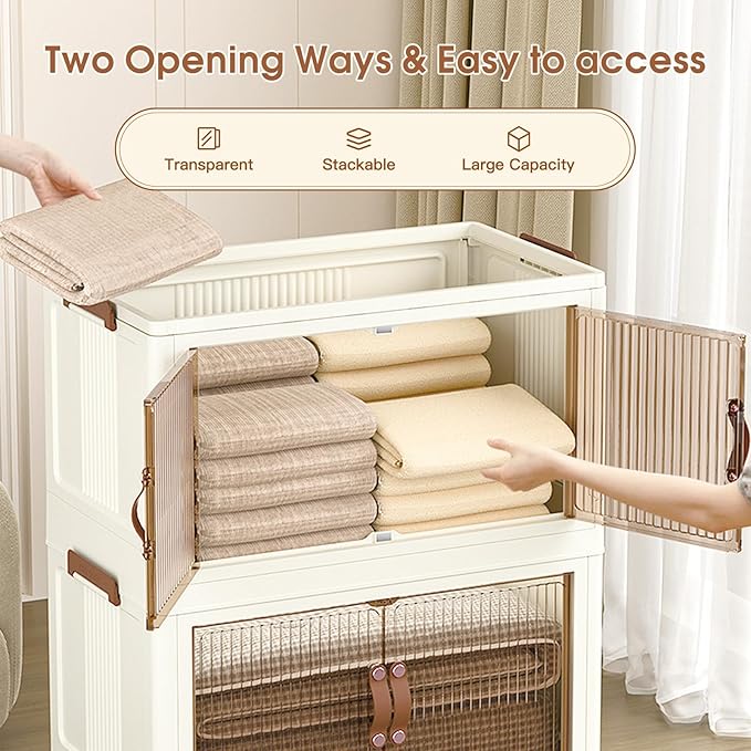 3 Tier Storage Bins with Lids, 104QT Collapsible Plastic Storage Bins, Folding Storage Boxes with Doors, Stackable Storage Organizer for Home, Office and Dorm