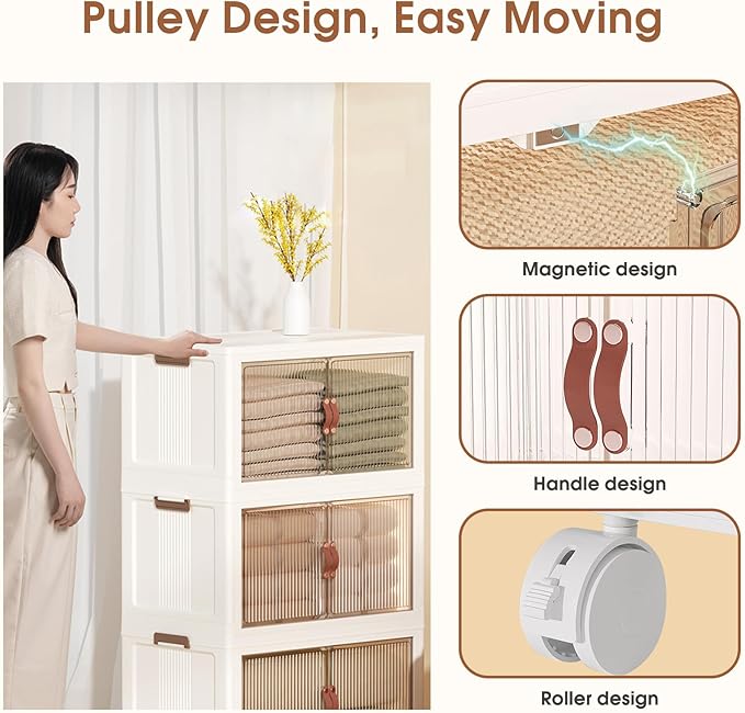 - 【Clearly Front Doors with Magnetic】The transparent front door of the storage drawers has a built-in magnetic buckle to ensure that the door does not open on its own. You can clearly see the items stored inside, and it is easy to identify the items stored inside. They feature four flexible wheels at the base, allowing easy movement during cleaning or reorganization, which is a good assistant to our family.