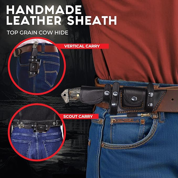 - Included Components : Fire Starter, Pure Leather Sheath, Sharpenning Rod, Survival Whistle