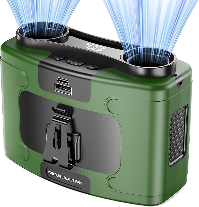 - Emergency Power Source: Features a Type-C input/output and USB output (5V/3A) of this portable belt fan, free charge your phone, tablet, or other devices on the go. Ensures that you can stay cool and keep in touch with loved ones in power outages or emergencies