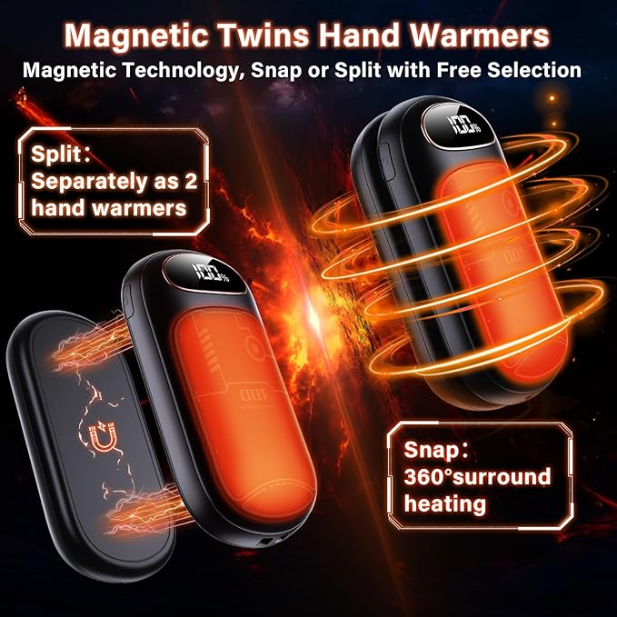 - 【2 in 1 Magnetic Hand Warmers Rechargeable 2 Pack】The CRISLEX electronic hand warmer can be tightly attached with strong magnetic force, forming a delicate palm-sized heater. When needed, it can be easily separated. When you are outdoors watching sporting events such as football games, baseball tournaments, etc., he can keep your hands from getting cold