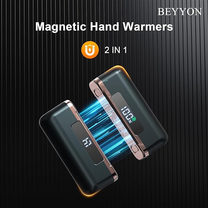 - 【Extended Battery Life, Portable Power Bank】-BEYYON hand warmers come with 10,000mAh high-capacity battery, providing you all day outdoor warmth. Each hand warmer can also function as a portable power bank to charge your phone, earbuds, and other devices. Juice both you and your devices up on the go!