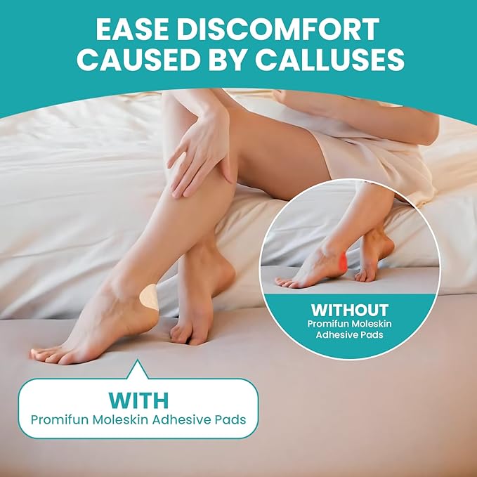 - Promifun Premium Material: Our sticky moleskin pads are made of high-quality flannel and adhesive, pre-cut, easy to apply, latex-free, non-irritating and friendly to sensitive skin. They are sized to fit you and designed to provide a comfortable experience.