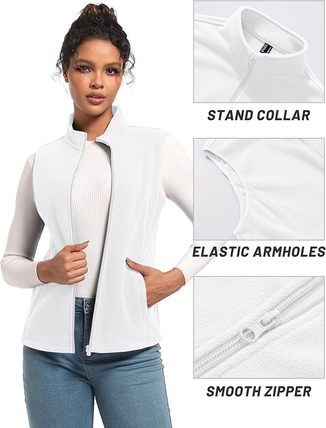 • WARMTH: women's zipper vest is made of fleece fabric, stand-up collar, zipper, and elastic armhole design, provides warmth and protection, suitable for spring, fall and winter