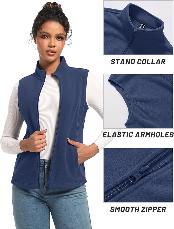 - WARMTH: women's zipper vest is made of fleece fabric, stand-up collar, zipper, and elastic armhole design, provides warmth and protection, suitable for spring, fall and winter
