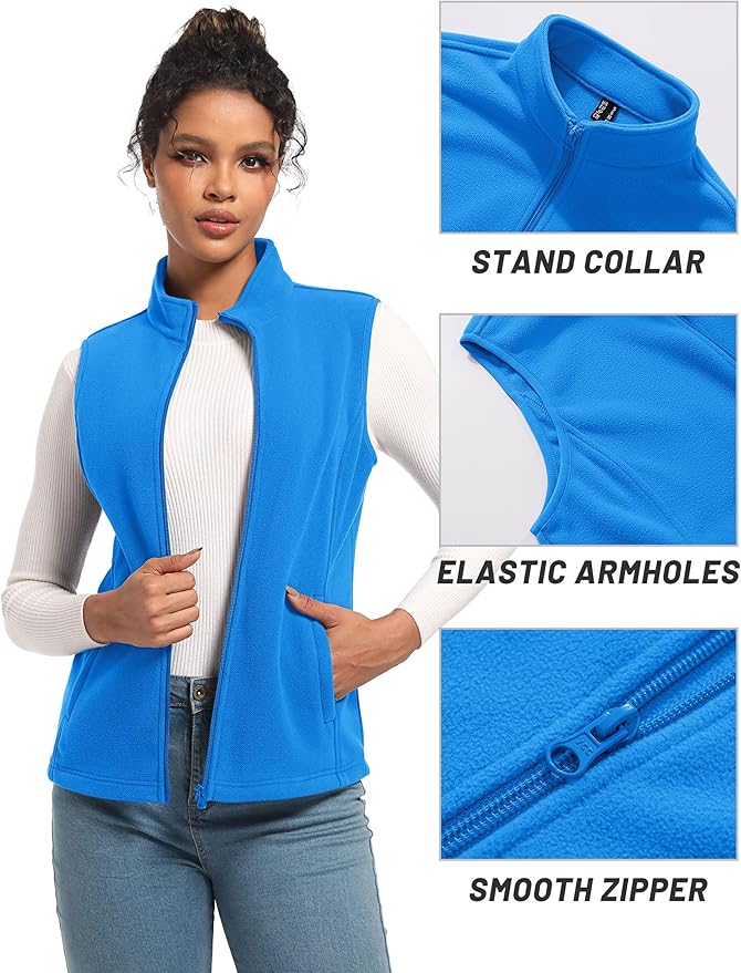• WARMTH: women's zipper vest is made of fleece fabric, stand-up collar, zipper, and elastic armhole design, provides warmth and protection, suitable for spring, fall and winter