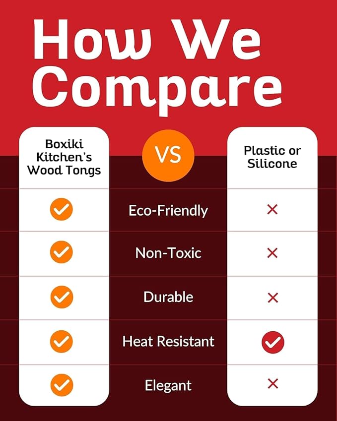 - NON-TOXIC NATURAL WALNUT WOOD: Our wooden tongs for cooking are expertly crafted from natural walnut wood, ensuring a non-toxic and safe experience. These serving tongs are reinforced with stainless steel, offering the durability needed for all your cooking tongs needs.