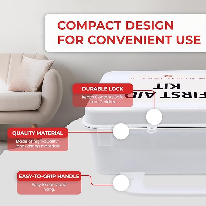 - Durable, Portable & Wall-Mountable Case – Housed in a sturdy plastic case with secure latches, this kit is designed for durability and easy access during emergencies. Its compact, portable design makes it ideal for homes, offices, vehicles, and job sites, with built-in mounting tabs for wall storage.