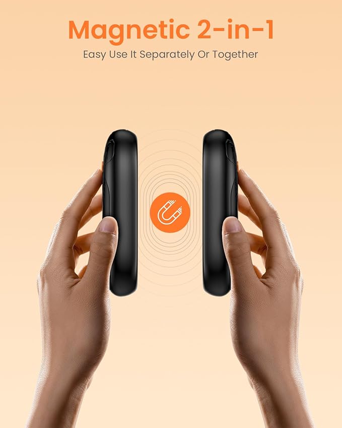 - 【2-in-1 Electric Hand Warmer】 AJVV hand warmers rechargeable come with a magnetic feature that you can put them together to make a double-sided heating hand warmer, you can also use it separately, one for each hand, or share your warmth with your friends, family, and loved ones. The portable pocket design is suitable for camping, skiing, hunting, fishing, golf, walking a dog, watching football and baseball, and various activities (Together Size: 1.9x3.5x1.6in; Separate size: 1.9x3.5x0.8in )
