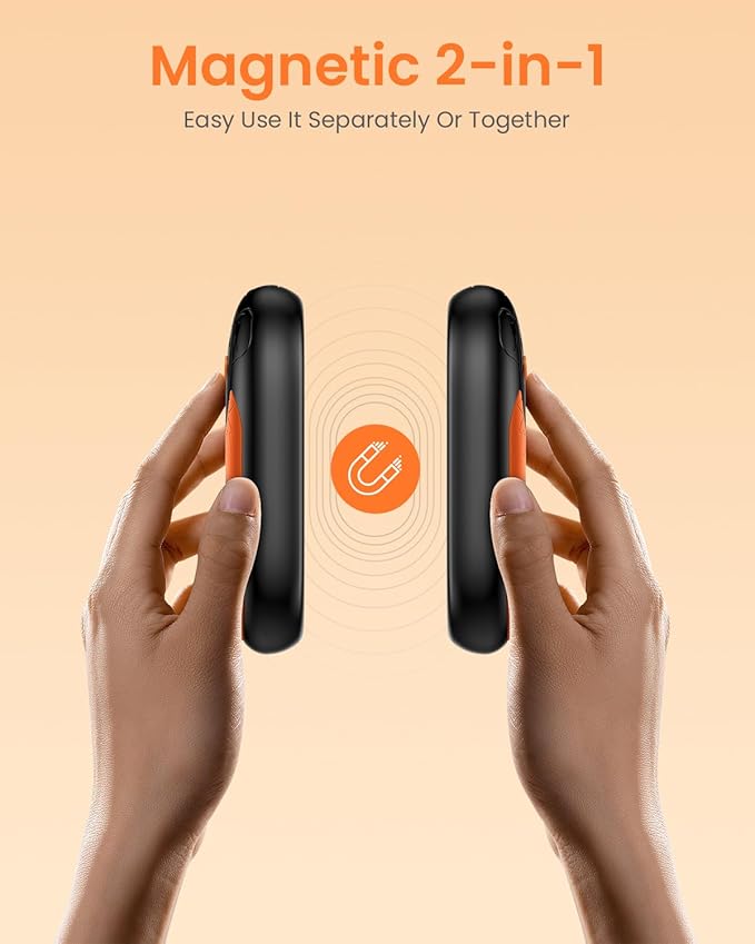 - 【2-in-1 Electric Hand Warmer】 AJVV hand warmers rechargeable come with a magnetic feature that you can put them together to make a double-sided heating hand warmer, you can also use it separately, one for each hand, or share your warmth with your friends, family, and loved ones. The portable pocket design is suitable for camping, skiing, hunting, fishing, golf, walking a dog, watching football and baseball, and various activities (Together Size: 1.9x3.5x1.6in; Separate size: 1.9x3.5x0.8in )