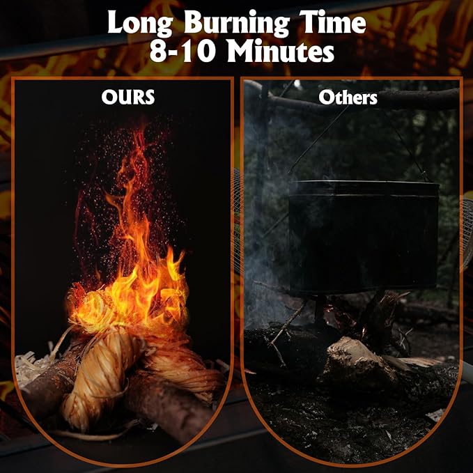 - Long Burn Time: Kickstart your fire within minimal time fire starters for wood stove. Every grill starter ensures around 8-10 minutes of burning time. Our fire starters for fireplace produce enough heat to make the fire with one or several pieces.