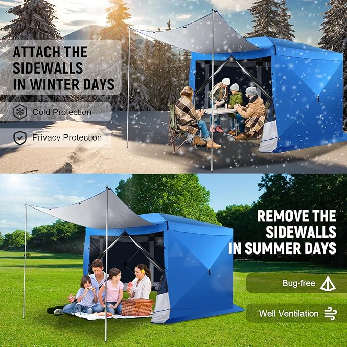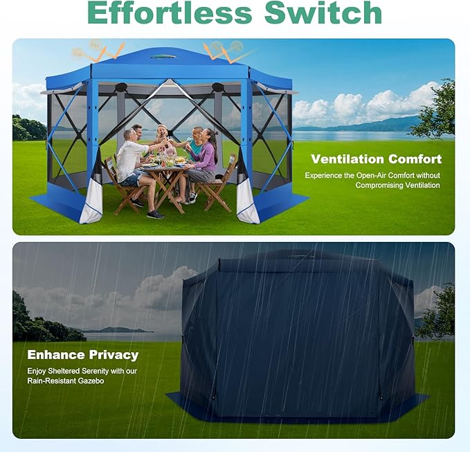 - ✅【Versatile Removable Sidewalls】 Enjoy ultimate flexibility with our removable sidewalls. Attach them for complete privacy during outdoor activities, or remove them to benefit from high-density mesh that offers both fresh air and scenic views while effectively keeping mosquitoes at bay.
