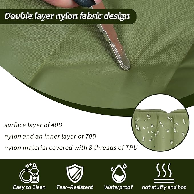 - 【40D Armor Shield】- Double-Layer Nylon (40D Surface + 70D Base) - TPU Coating Stops 90% Punctures from Rocks- Wipe Clean with 1 Damp Cloth, No Stains Left,Dark stains stay for too long will difficult to clean