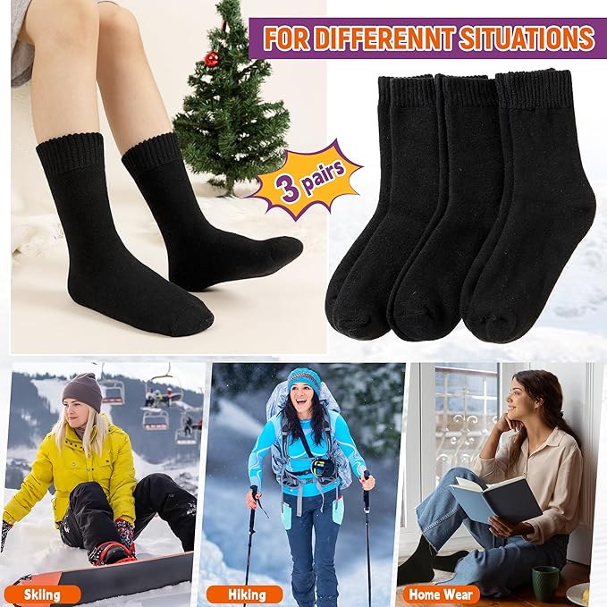 - Variety of Styles & Generic Size: The pack of 3 thermal socks comes in a selection of colors and designs to match your style, mood, or outfit. They fit women’s shoe sizes 5-10. These versatile thermal socks are suitable for various situations, including cabin socks, home floor socks, hiking socks, heavy work socks, winter warm socks, fuzzy socks, outdoor socks, and sports socks.