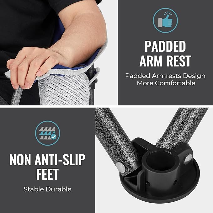 - Maximum Comfort for Relaxation Anywhere: With its ergonomic, pre-curved backrest and double-layer padded structure, this camping chair ensures your back is fully supported while you relax. The armrests are also padded, offering soft, cushioned support for your arms, so you can sit back and unwind comfortably for hours.