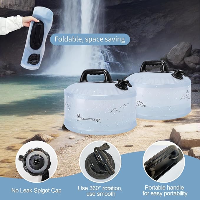 - Leak-Proof Lid:Unlike ordinary water bags, the large twist-off cap provides a leak-proof seal, and the large bottle mouth facilitates filling and pouring, making it easy to prevent leaks and spills when transporting water. The easy-on/off faucet design allows quick control of water flow, making it easy to use
