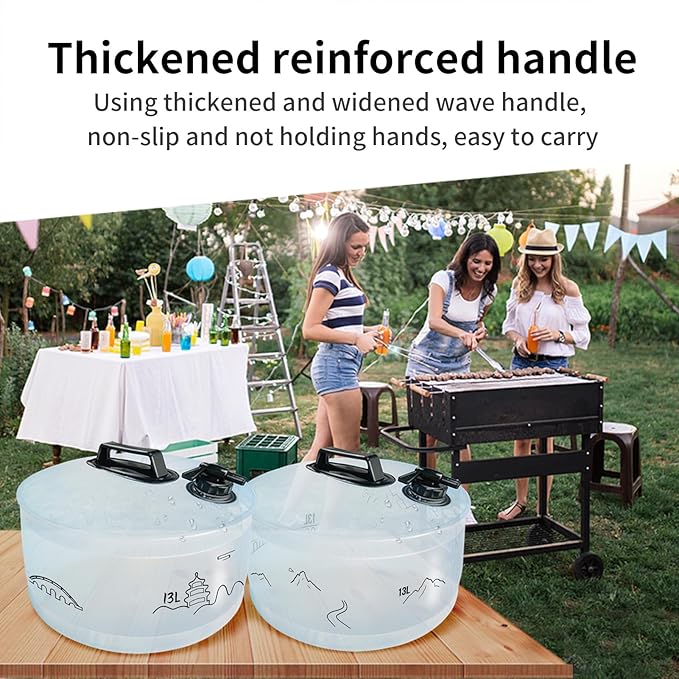 - Reusable:This water container can be easily folded and stored, and is lightweight and can be easily carried in a backpack or car, making it ideal for camping, RVing, and hiking