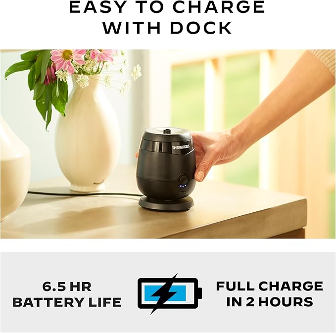 - SCIENTIFICALLY PROVEN MOSQUITO PROTECTION: Thermacell is scientifically proven to repel mosquitoes from a 20FT zone. Recommended by outdoor experts and trusted to work in the toughest mosquito environments. Comes in a convenient starter pack complete with a repeller, fast-charging dock, and 36 hours of refill.