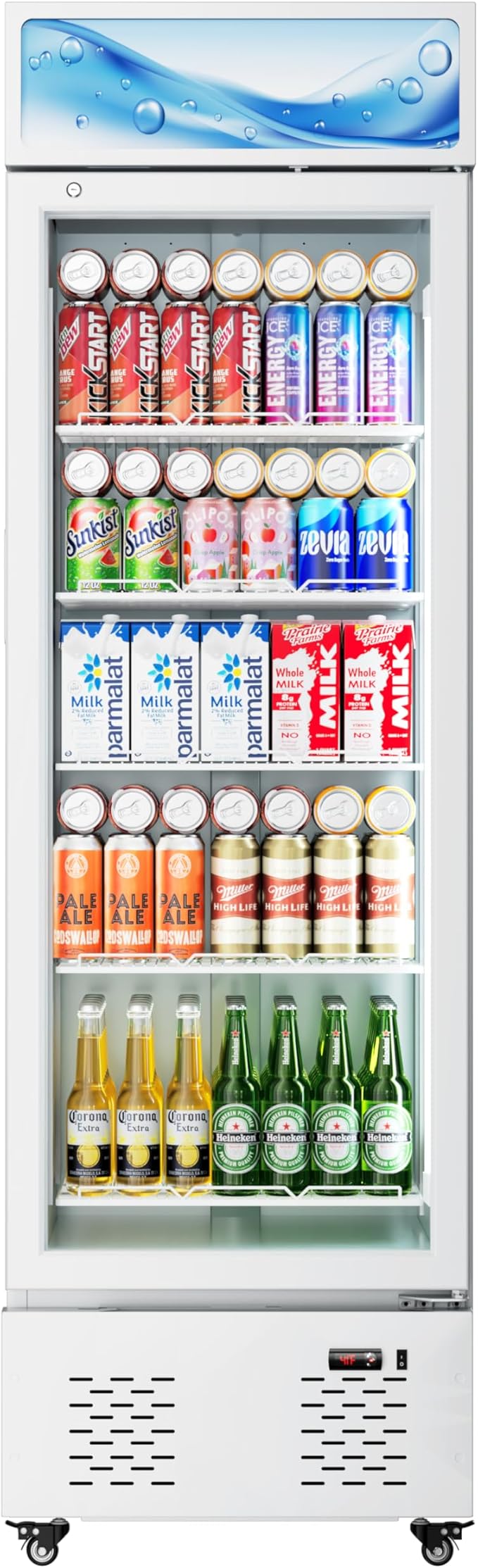 - This commercial beverage refrigerator comes wtih castor wheels to ensure easy mobility while maintaining stability when standing. TIPS: Please tear off the plastic protective film when you received the refrigerator and let it stay for over one day before power to use