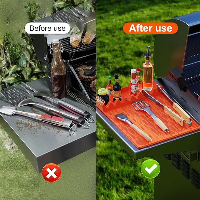 - Must-Have Accessory for BBQ Enthusiasts: Our Silicone Spatula Mat is the perfect gift for BBQ and grill aficionados. It's designed to hold a variety of utensils and grill box spice jars, while keeping your countertop clean from dirty spatulas and preventing spills of soup and oil. Elevate your BBQ