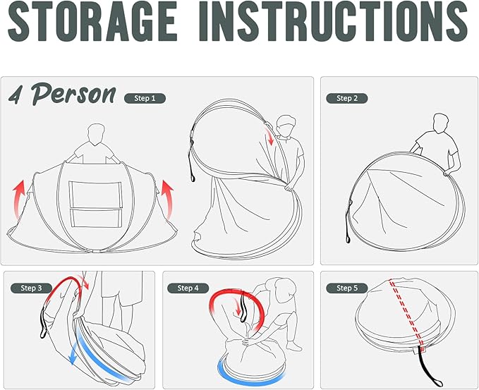 - Easy to set up and storage- Featuring a pop-up design, this tent can be effortlessly assembled within minutes, saving you time and effort during your outdoor adventures.The Pop Up Tent for Camping is designed with easy storage in mind, making it hassle-free to pack up and transport. For specific storage steps, please refer to the pictures and videos we provide.