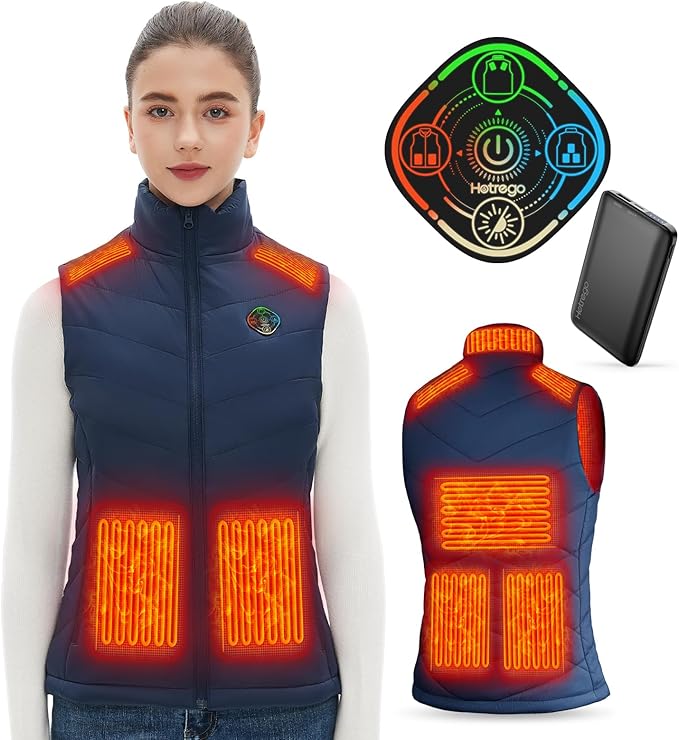 • Upgraded 5-in-1 smart controller - our heated vest for women rechargeable, equipped with 3 heating levels (149°F-131°F-113°F) and 3 independent control zones (neck and shoulders, abdomen, back and waist), allowing you to customize your warmth for any weather or environment; Simple operation, one-touch to enjoy your unique warmth with our warming vest for women heated ; Unique light-off design allows you to perfectly blend into any environment, whether it is outdoors or daily work