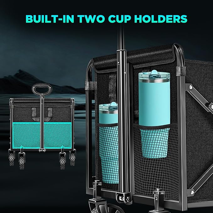 - New Version with Thicker Tires: The wagon wheels made with a new technological process, with multiple nano-injection of rubber for greater strength and reliability. All-terrain performance wagon cart and built-in cup holder,designed for smooth gliding on sand, grass, gravel, and uneven surfaces. Includes built-in cup holders for convenient storage of drinks and small items during outdoor adventures or errands