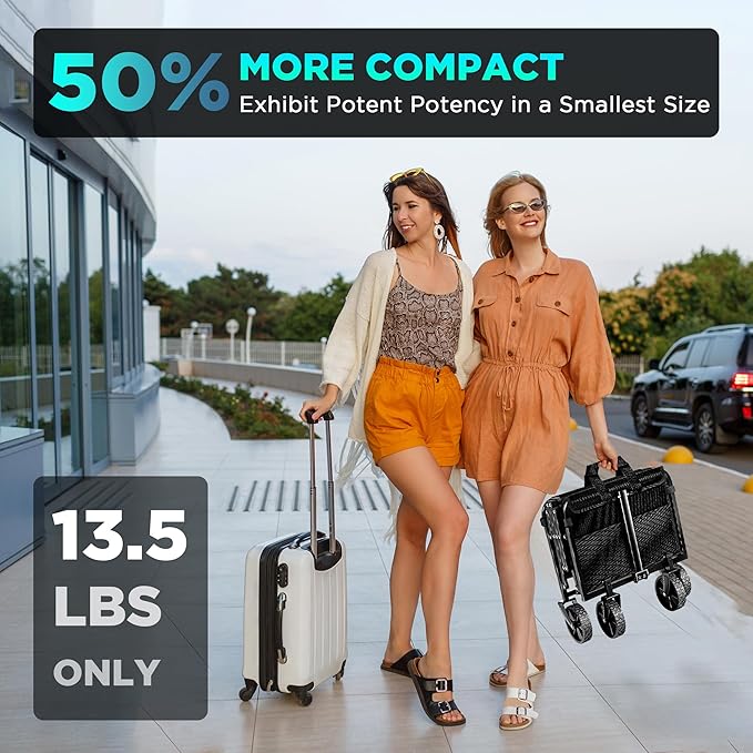 - 2025 Upgraded Wagons Carts Foldable: Weighing just 13.5 lbs, our collapsible wagon is designed for ultimate portability, allowing for effortless one-handed carrying. When folded, it measures a compact 19.7" (L) x 5.1" (W) x 22" (H), making it space-saving and easy to store in your car trunk or closet. Unfolding and folding the wagons carts foldable takes only seconds, ensuring a smooth and convenient experience whenever you're on the move
