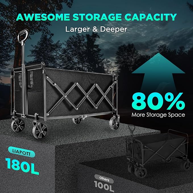 - Heavy Duty Wagon Cart: LIAPOTT foldable wagon is made of high-quality alloy steel frame with a maximum load capacity of 500 lbs resting weight capacity and 380 lbs dynamic weight capacity, ideal for carrying various items with ease