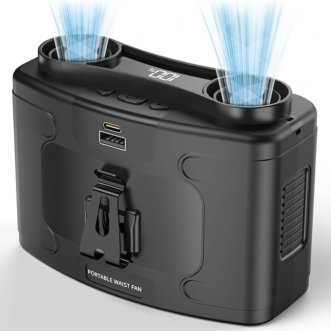 - 40H Long-lasting Cooling: This waist fan features a built-in 10000mAh rechargeable battery and a powerful motor, providing powerful but comfortable airflow. It can last up to 8-40 hours (single motor operated mode) on a single charge(only 4-5 hrs for fully charged). Perfect for use in jobsite outdoor garden